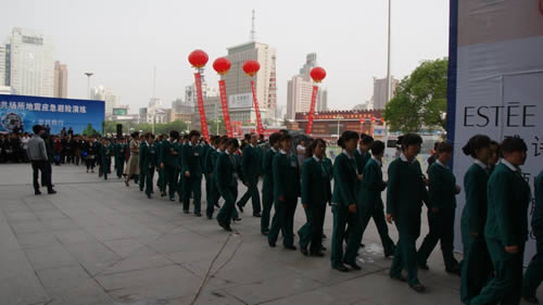 員工疏散完畢后,以整齊的隊(duì)列在東方紅廣場(chǎng)集合列隊(duì),展示了良好的精神風(fēng)貌