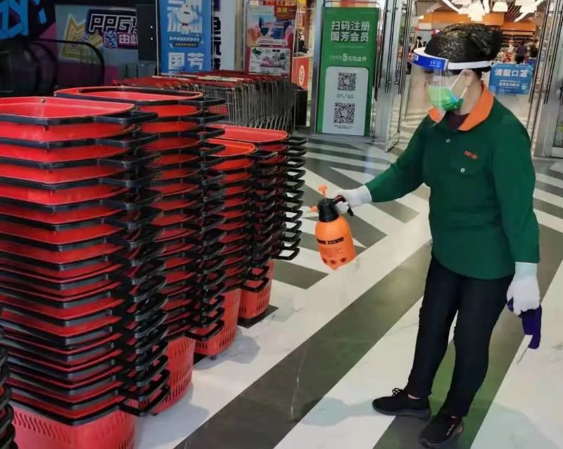 公司第一時間統(tǒng)計全體員工健康安全狀況,對商場外圍、各出入口進行整體消殺;百貨、超市公共區(qū)域設施、電梯、衛(wèi)生間等區(qū)域每兩小時進行消殺;開啟商場新風系統(tǒng)進行空氣對流,并對空調系統(tǒng)進行消殺,為顧客營造安全放心的購物環(huán)境。