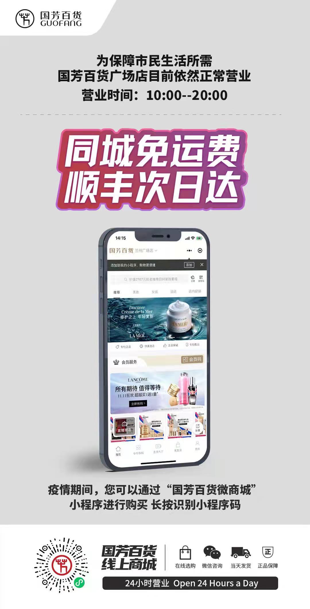集團公司旗下國芳百貨積極響應政府部門號召,采取全員居家辦公形式,呼吁顧客免外出、免接觸,通過國芳線上商城進行商品購買,同時增加直播平臺推廣量,保證安全的基礎上滿足顧客居家購物需求。國芳百貨全體員工努力在特殊的疫情環(huán)境下,為顧客解燃眉之急,想顧客之所想,急顧客之所急!