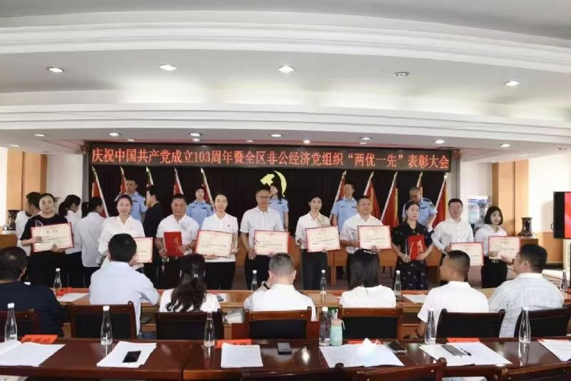 2024 年7月9日上午,“中共蘭州市城關(guān)區(qū)非公有制經(jīng)濟(jì)組織委員會紀(jì)念建黨 103 周年暨兩優(yōu)一先表彰大會”在城關(guān)區(qū)市場監(jiān)督管理局十樓隆重召開。